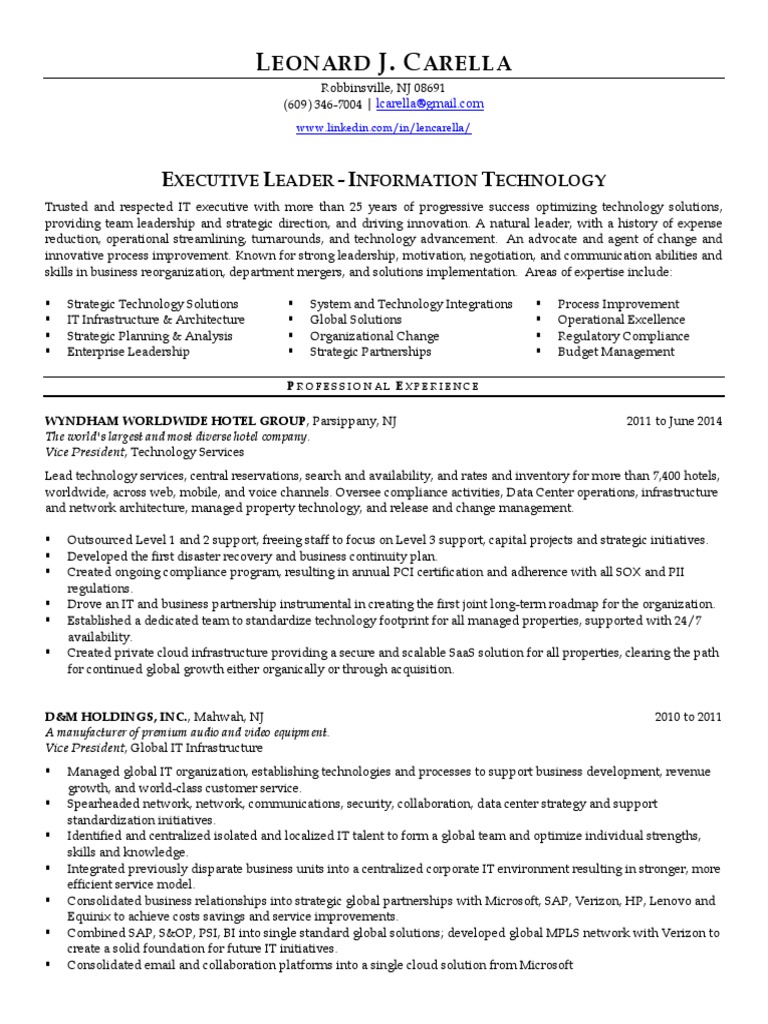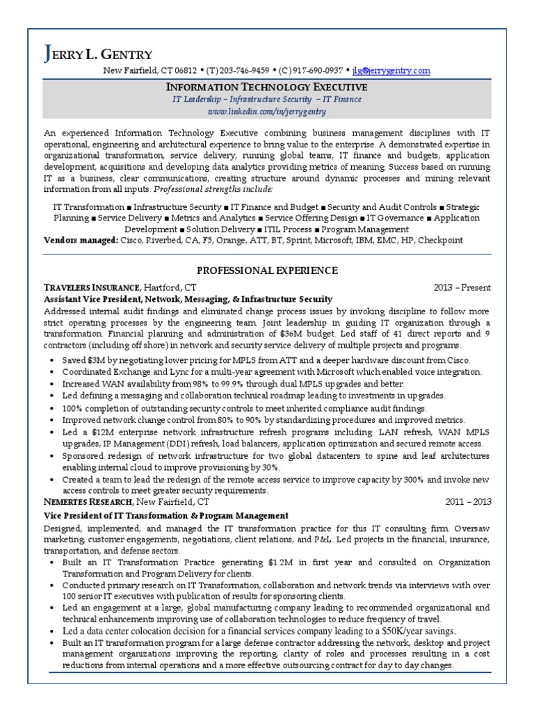 Sample Resume Vp Information Technology. Find the best Vp Of Information Technology resume examples to help you improve your own resume. But first, think about this: Diagnosing system malfunctions.