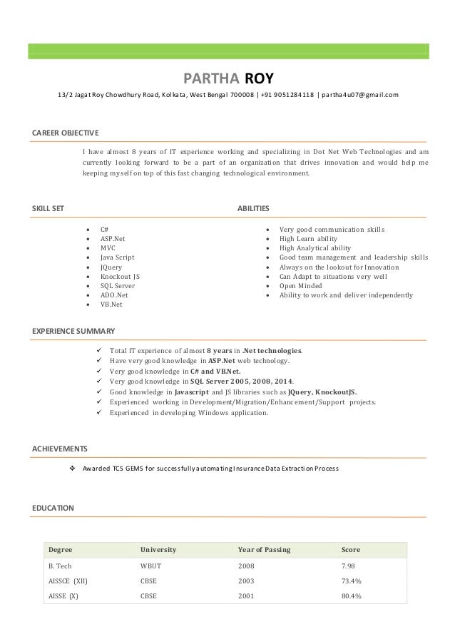 Sample Resume For Dot Net Developer Experience 8 Years ...