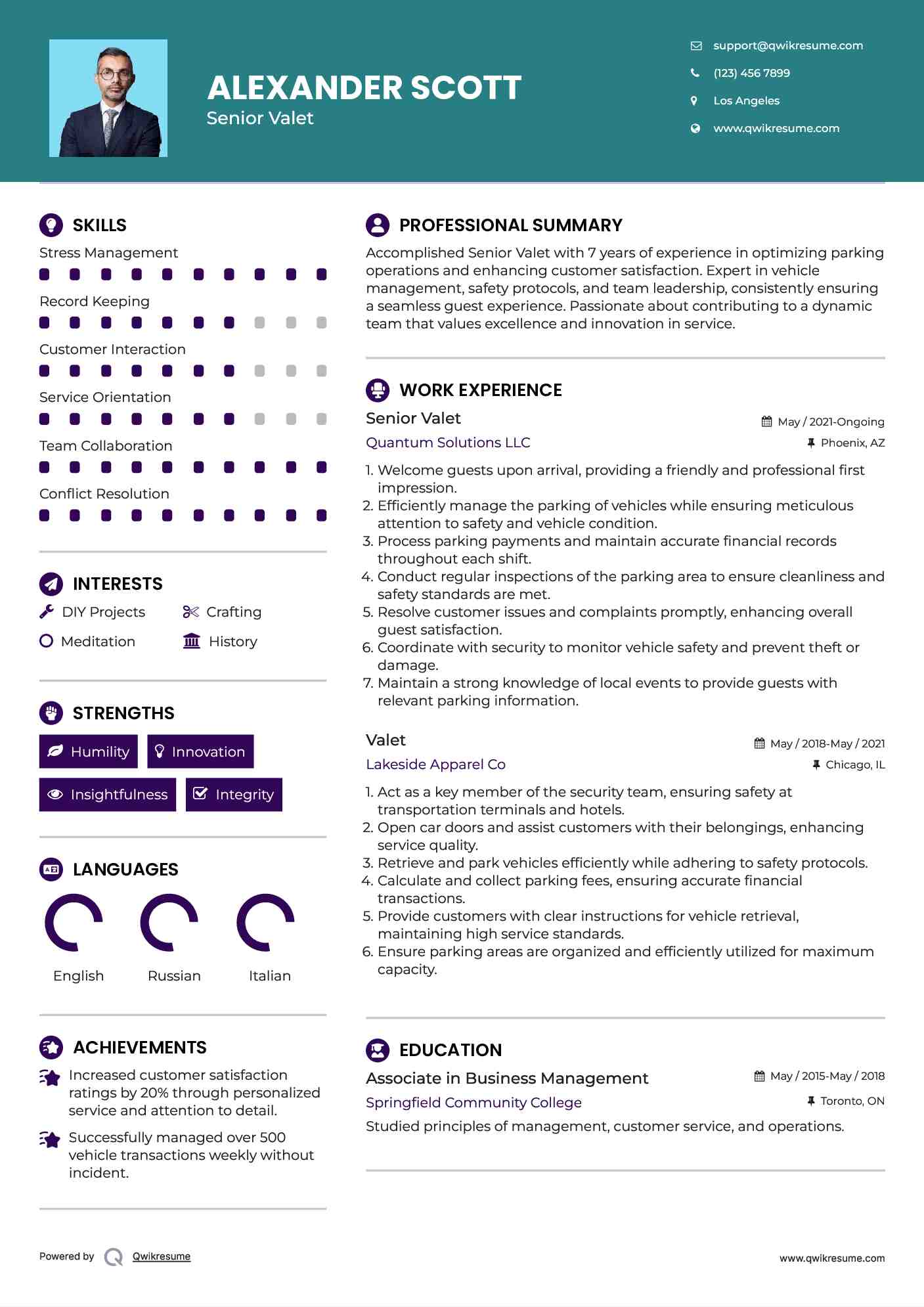 Valet Attendant Resume Samples | QwikResume