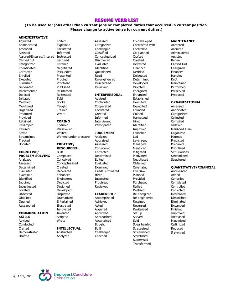 Action words are the verbs used on your resume that actively highlight your skills and experience and make your Tailor your action words and resume to each specific job description you apply for. No matter what duty or accomplishment you're trying to show off, we've got just the resume action verb for you to ensure you're the person for the job. You can say "I washed the.